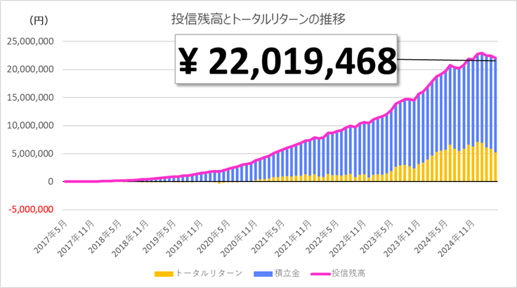 | 累計積立額 | トータルリターン | 投信残高 |