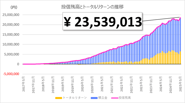 投信残高が2,400万円を突破しました。割と近いところに2,500万円も見えています。