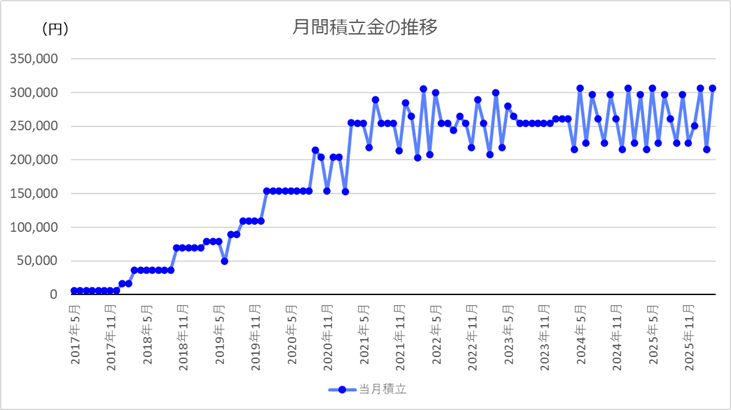 はじめの1年半くらいは会社のDC制度を使って、ひと月5000円を積み立てていましたが、「つみたてNISA」制度の開始をきっかけに徐々に積立額を増やしてきました。