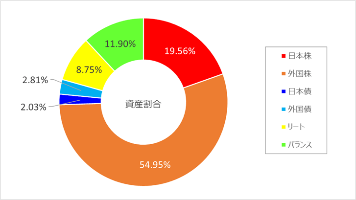 投資信託ごとに日々の値動きは異なるので、保有割合も変化します。あまり一つの資産に偏りすぎないように毎月チェックしています。