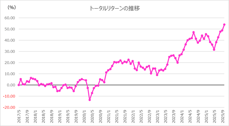 トータルリターンが50%を突破し、金額としても1,000万円が見えてきました。