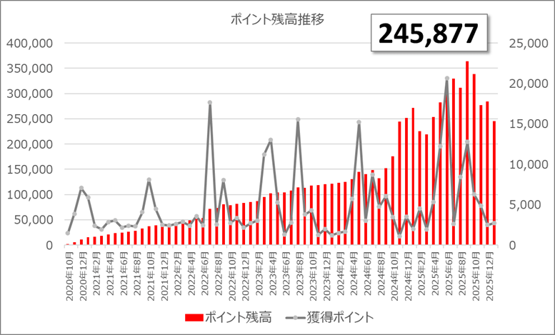 ポイント残高は、25万ポイントくらいです!